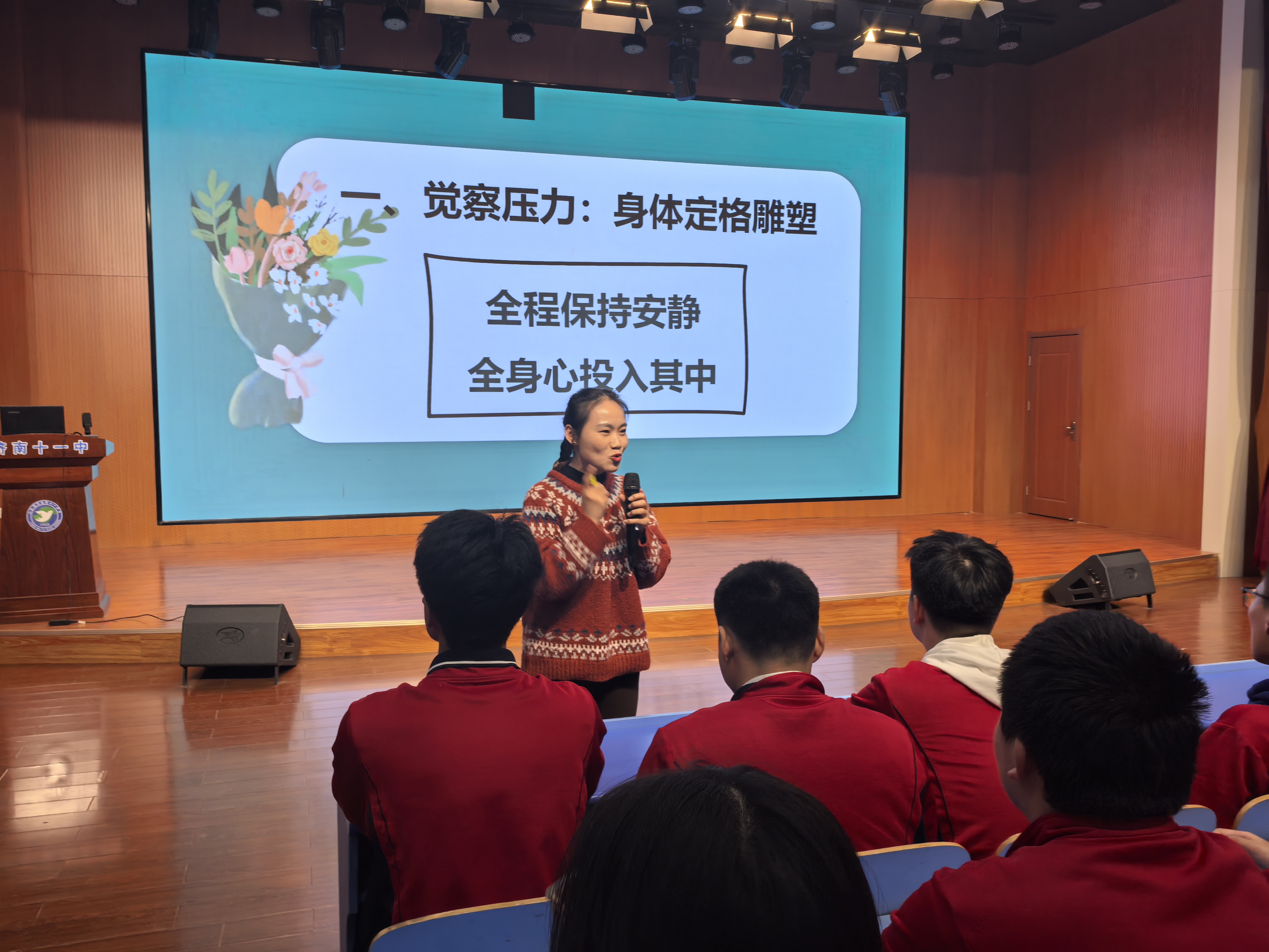 备考不仅是知识比拼,更是心态较量。大会特邀济南市首批家庭教育指导名师、济南十一中专职心理教师王晓娜开展《压力“变形记:解锁高三筑梦密码”》主题团体辅导。“觉察压力”环节,学子通过身体定格雕塑定格压力瞬间;“认识压力”环节,王老师用真实案例解析压力的双重属性;“转化压力”环节,“谁是压力反应王者”互动游戏让学子在竞技中学会科学应对;“重拾压力”环节,大家共同揭开压力“动力本质”的真面目。活动有效帮助学子接纳焦虑情绪、掌握减压技巧,以阳光从容的心态投入备考。 大会最后,王芸主任总结强调:期中是新起点,愿学子以表彰为动力、以心态为支撑,不负韶华,用拼搏书写高三荣光。此次活动既肯定了阶段性成果、明确了努力方向,更缓解了压力、凝聚了力量,为接下来的备考注入了强劲动力。高三的征程仍在继续,每一次努力都是通向成功的基石。相信在全体师生的共同努力下,高三学子定能以更加坚定的步伐迈向未来,在青春的舞台上绽放属于自己的光芒。 |