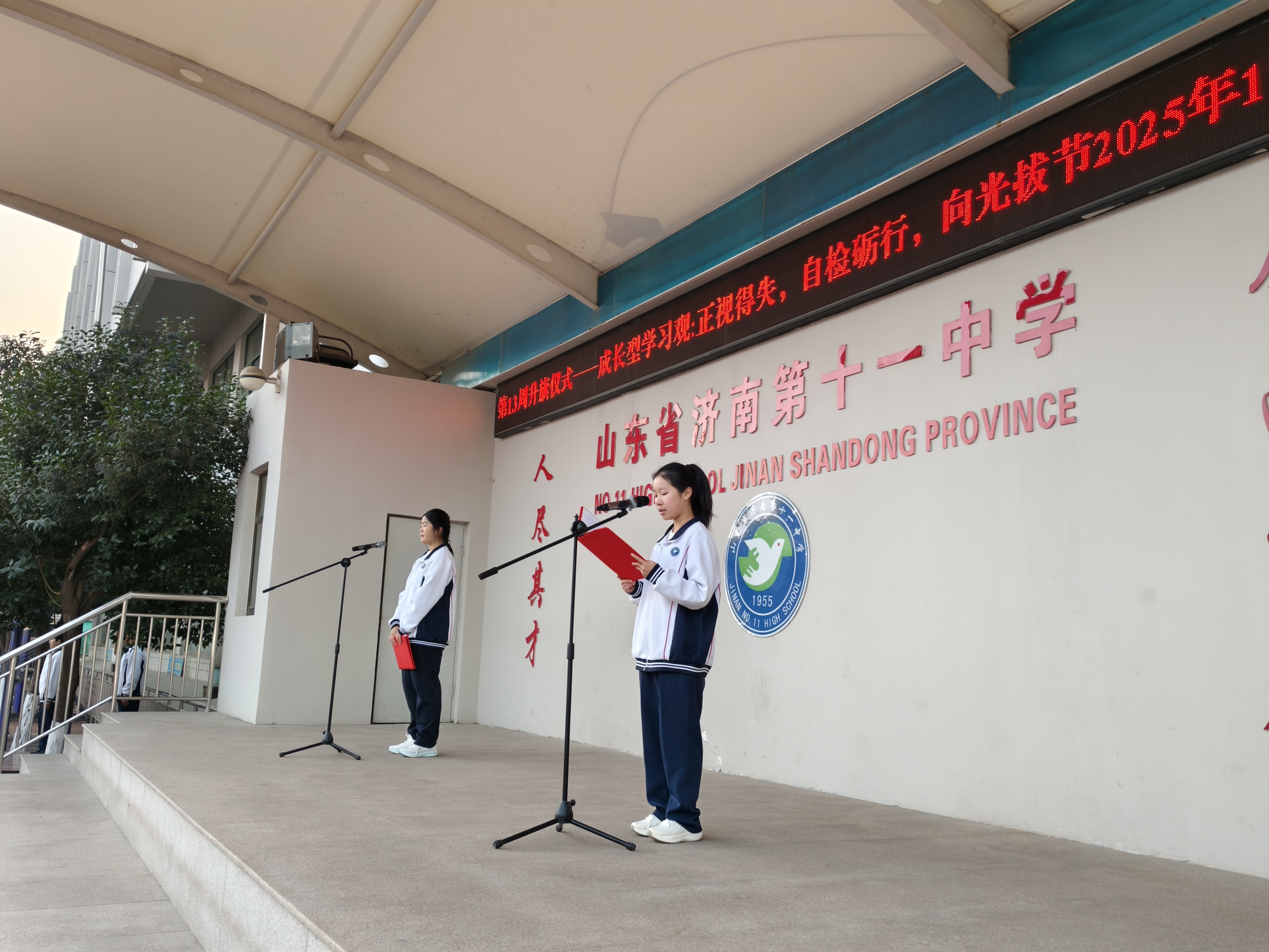 迎着清晨第一缕朝阳,学校全体师生齐聚操场,举行以“成长型学习观:正视得失,自检砺行,向光拔节”为主题的升旗仪式,将成长智慧融入晨光,为学子成长注入精神力量。 承担本周升旗任务的是高一·5班,学生代表以自身学习经历为切入点,生动诠释“正视得失不是妥协,而是成长的起点”。她向全体同学发出倡议:把每一次进步当作前行的阶梯,把每一次不足视为完善的契机,在日常学习中主动自检错题、复盘方法,以“向光”的姿态克服困难,在点滴积累中“拔节”成长。