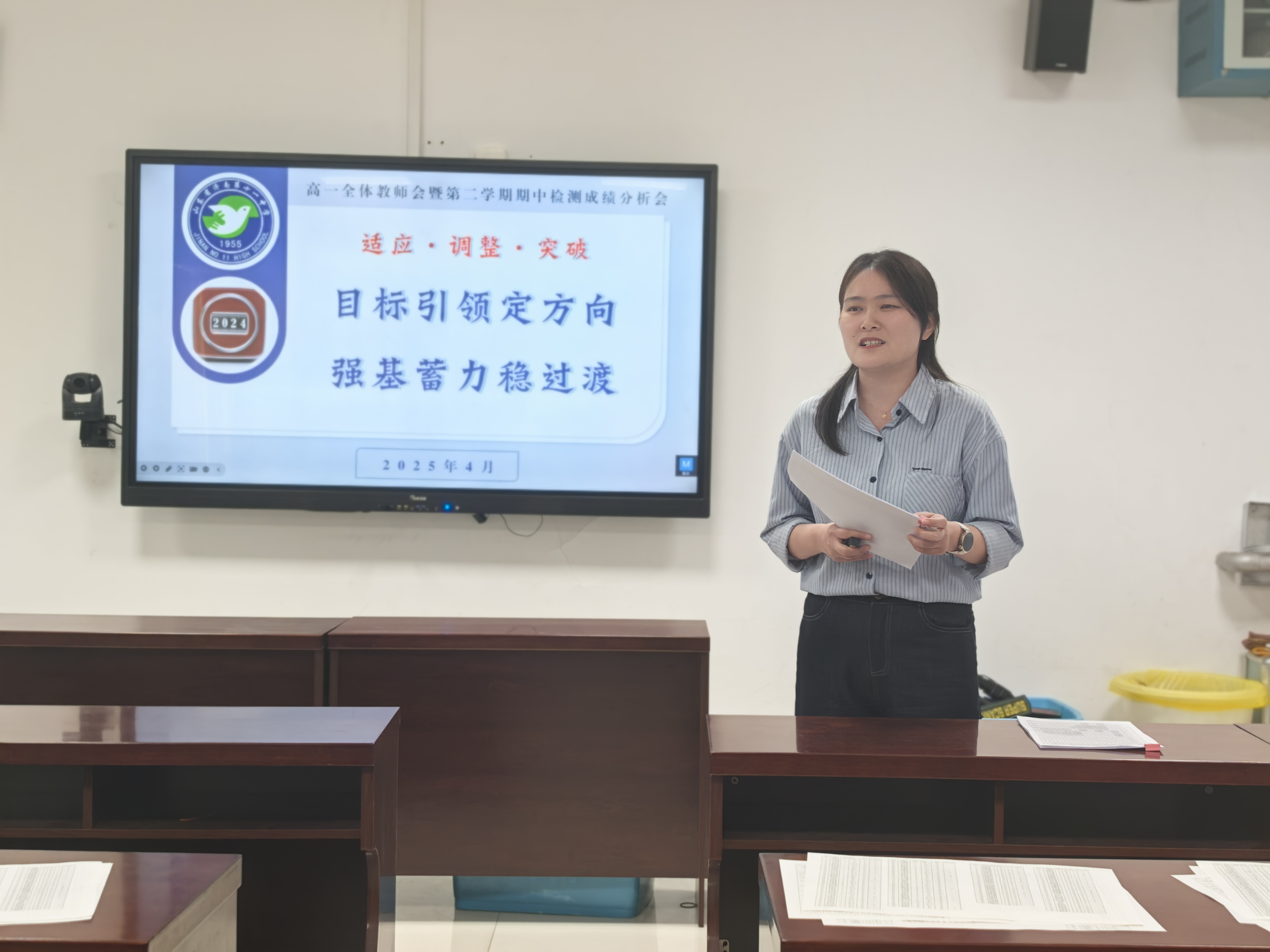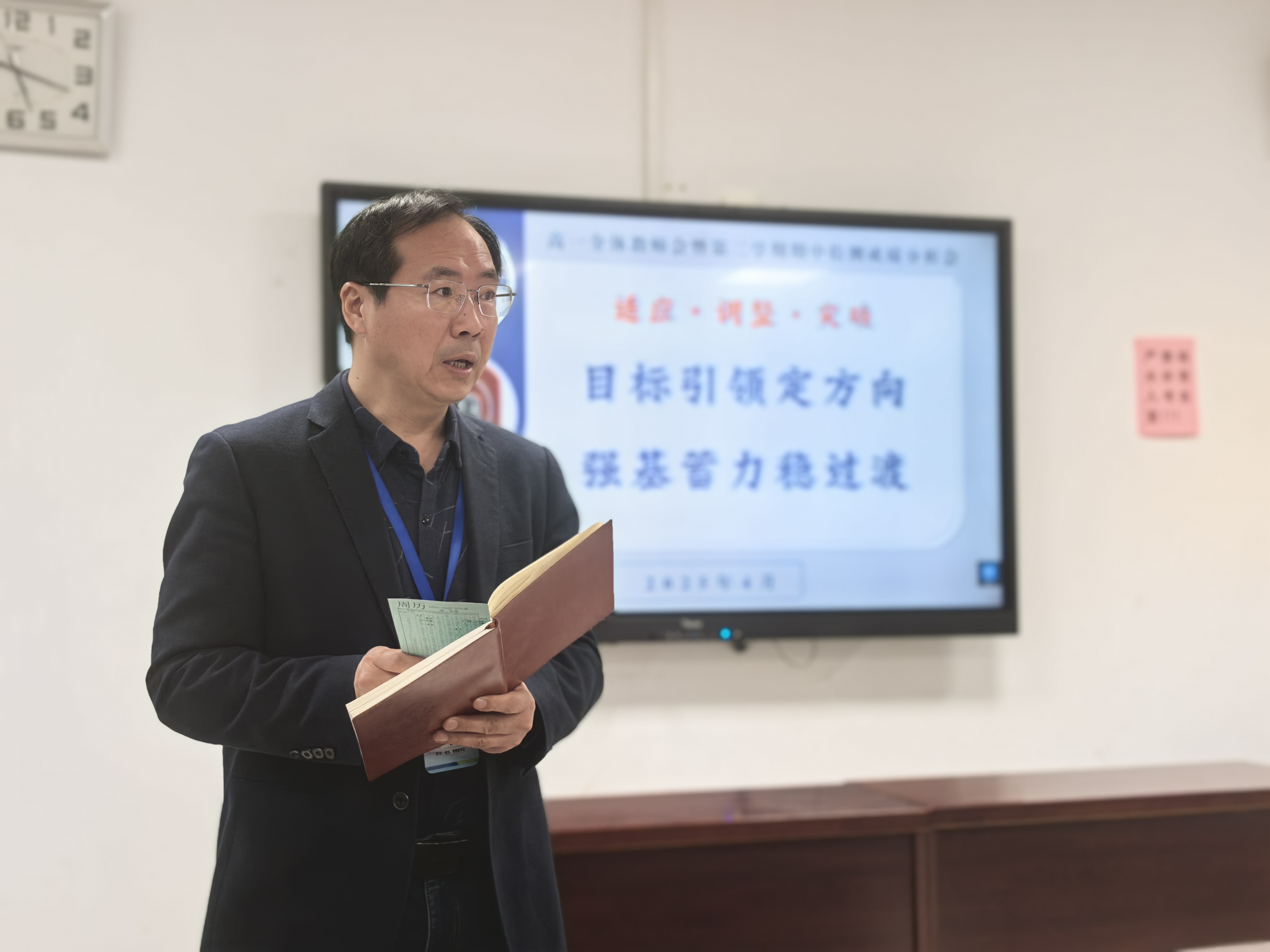 为全面分析教育教学现状,精准施策提升育人质量,4月29日下午,高一年级召开了以“适应·调整·突破”为主题的期中阶段总结会。全体高一教师齐聚一堂,共同聚焦教育教学痛点、共谋提质增效良策。会议由年级主任宋敬主持,校长杨滨参会。