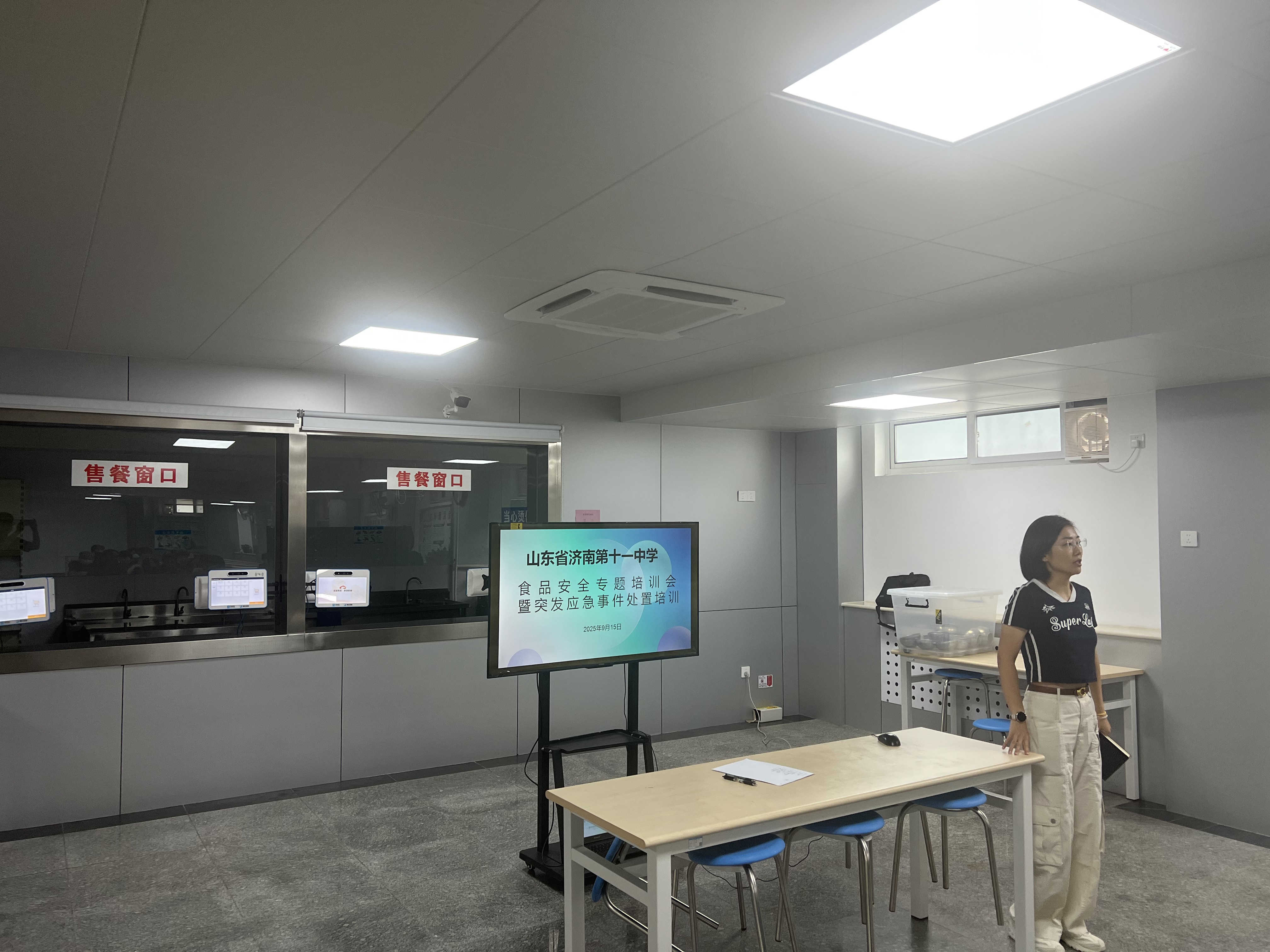 为切实守护全体学生“舌尖上的安全”,进一步夯实校园食品安全管理基础,提升从业人员对突发食品安全事件的应对处置能力,9月15日,济南十一中组织全体食堂工作人员,开展食品安全专题培训会暨突发应急事件处置培训。副校长张清福、后勤保障部主任助理赵凯、学校食品安全员王玉馨分别结合工作实际,就培训核心内容、实操要求及工作原则作部署与总结,为校园食品安全工作划定清晰方向。 培训环节,王玉馨老师围绕食品安全与突发应急事件处置展开讲解。一方面,她精准梳理当前校园食品安全管理中需重点解决的七大关键问题,直指管理痛点,为后续整改明确靶向目标;另一方面,她从四大维度提出系统性工作举措,为构建全链条食品安全管理体系提供框架支撑。