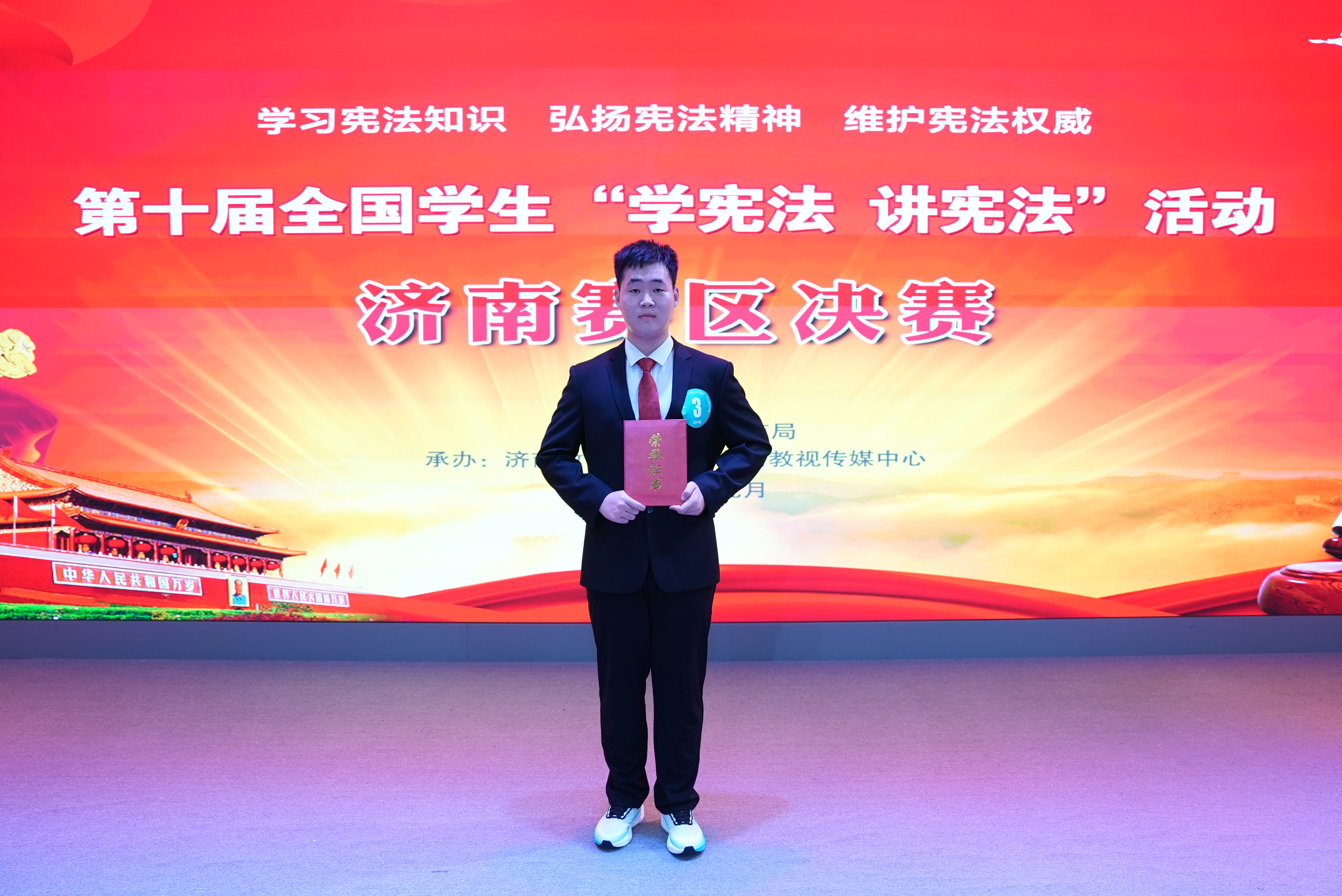 近日,第十届全国学生“学宪法 讲宪法”活动济南赛区决赛在济南教育电视台圆满落幕。济南十一中高二学生王煜博(指导老师:孟庆天)凭借扎实的法治素养、出色的演讲能力与真挚的情感表达,在高中组激烈角逐中脱颖而出,以第一名的优异成绩荣获一等奖,并成功取得代表济南市参加山东省决赛的资格。 本次比赛由济南市教育局主办,分为法治素养竞赛与演讲大赛两大项目,设有小学、初中、高中三个组别。在演讲比赛环节,王煜博同学先后进行了题为《沐宪法之光,铸守法脊梁 践法治之行》与《尊法守法,让青春远离阴霾——从一幅漫画说开去》的两场演讲。他从社会热点与自身体会出发,结合宪法原则与部门法实践,抒发了对法治精神的深刻理解,表达出青年一代对公平、正义、诚信的坚定追求,展现了十一中学子良好的精神风貌与法治意识。 赛后,王煜博同学与评委老师进行了亲切交流,就省赛准备事项虚心请教,获得了评委的细致指导与鼓励。他表示,将继续打磨讲稿、提升表达,力争在省赛中再创佳绩,为校争光。 一直以来,济南十一中高度重视法治教育,积极组织学生参与各类法治宣传活动,营造“尊法、学法、守法、用法”的校园氛围。此次成绩的取得,既是学生个人努力的成果,也是学校持续推动法治育人工作的体现。祝愿王煜博同学在接下来的省赛中继续展现风采,载誉归来! |