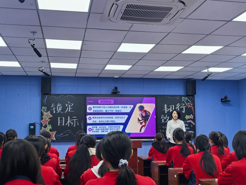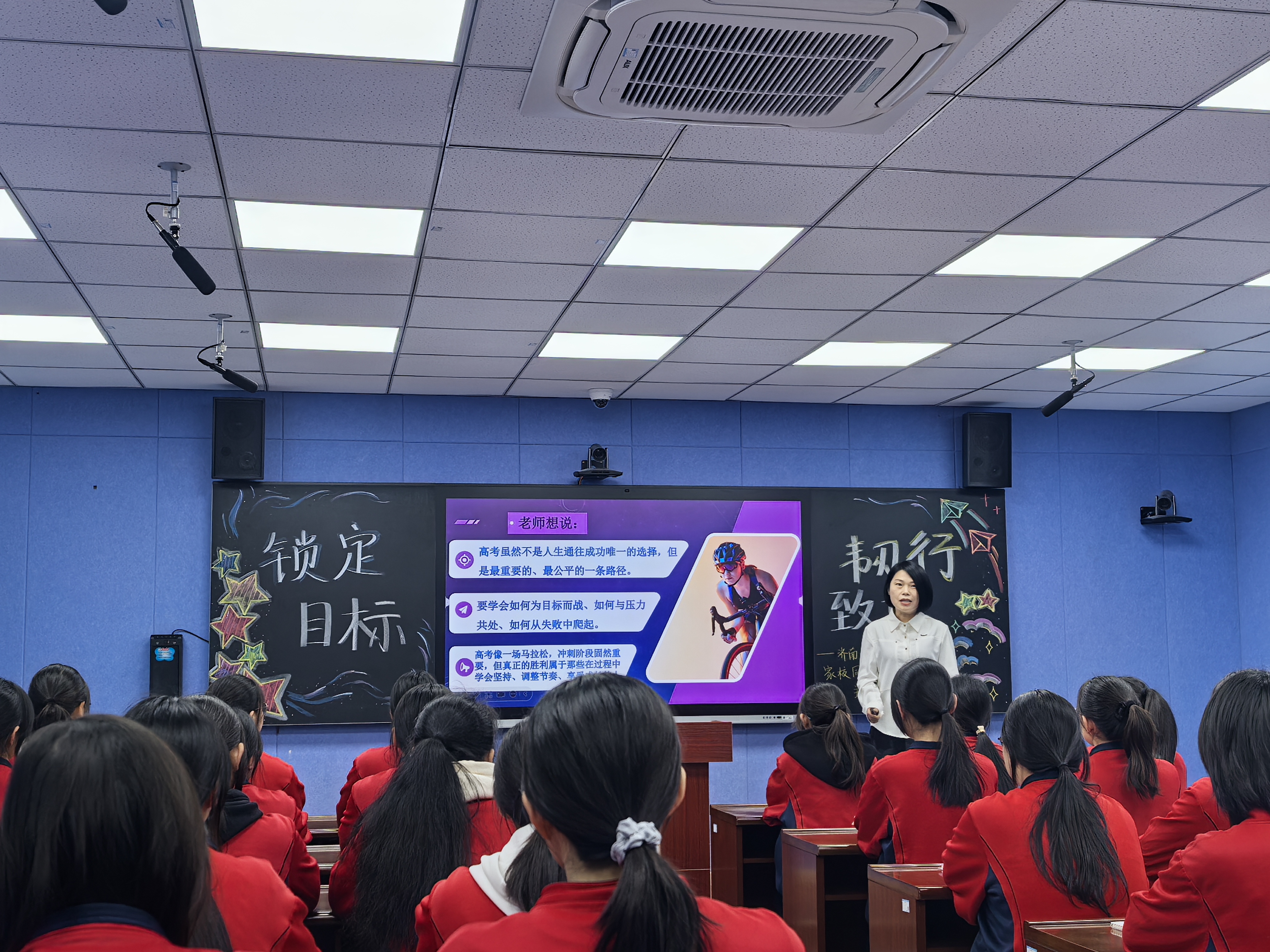 近日,济南十一中高三年级成功举办了第三期励志德育开放课暨主题班会活动。本次活动以“锁定目标,韧行致远”为主题,特邀全体高三学生家长云端相聚,共同见证孩子们的成长与蜕变,凝聚家校合力,助力学生迎接挑战、走向未来。 活动在温馨的成长回顾视频中拉开帷幕。班会伊始,高三·6班班主任杨雁君老师引导学生围绕“高三何为”展开深入思考,三位学生代表分享了高三开学以来的心路历程,表达了在压力中成长、在奋斗中坚定的共同心声。班主任在发言中强调,高考不仅是知识的检验,更是意志的磨砺、成长的舞台,鼓励学生以积极心态面对挑战,在过程中学会坚持、在拼搏中实现超越。