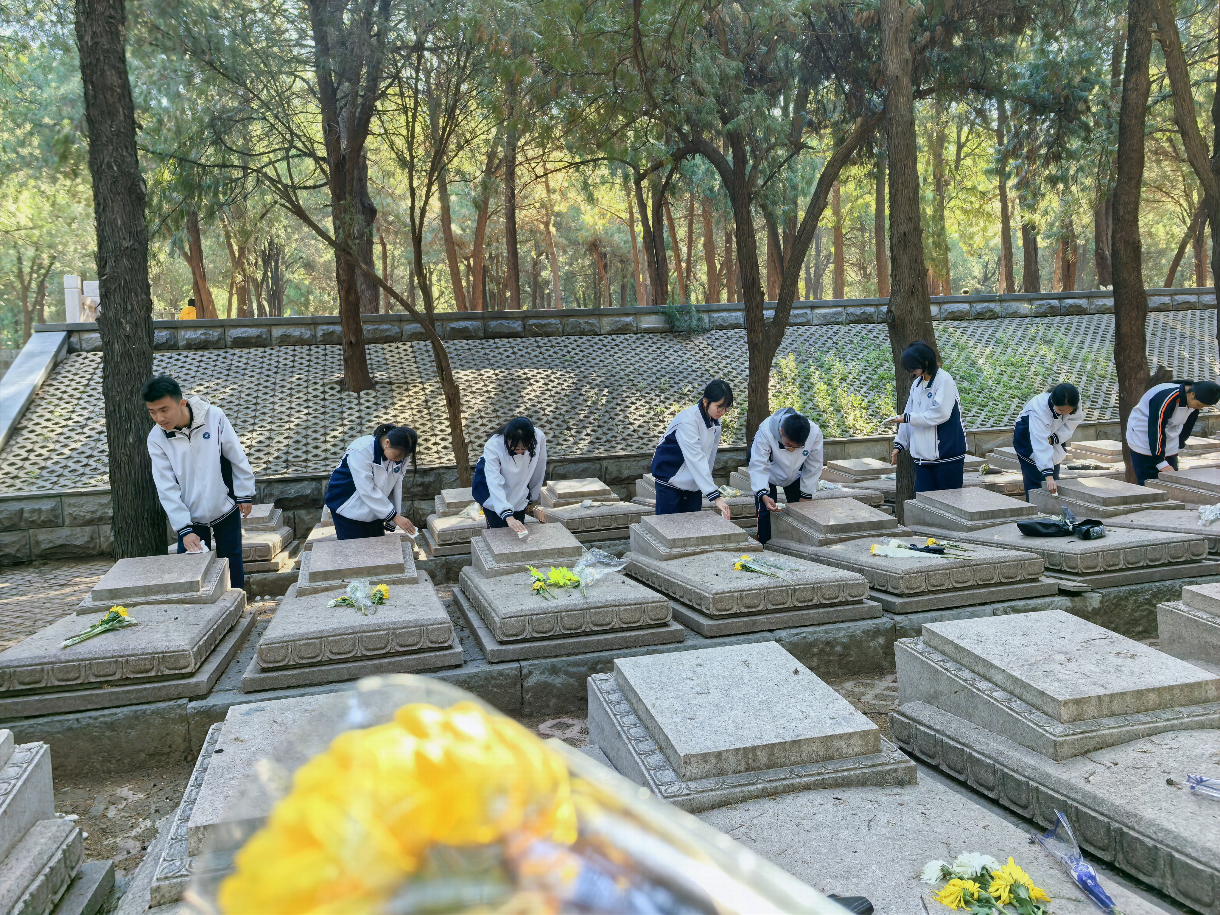 春风拂松柏,哀思寄英魂。4月4日,济南十一中团员青年走进济南英雄山烈士陵园,开展“追寻·2026清明祭英烈”主题团日活动,以青春之名缅怀革命先烈,传承红色精神。 活动当日,团员青年们身着整洁校服,在英雄广场整齐列队,携手房泽安热线志愿服务中心、《孔子学堂》诵讲队等组织,共同参与祭扫活动。在革命烈士纪念雕塑前,全体人员肃立,举行庄严的敬献花篮、整理缎带仪式,向革命先烈致以崇高敬意。团员青年们在肃穆氛围中感悟英烈精神,坚定理想信念。仪式后,学子们怀着崇敬之心,有序为烈士墓碑敬献鲜花,追思英雄事迹,让红色信仰深植青春。