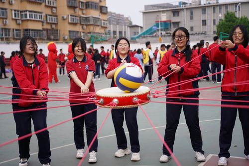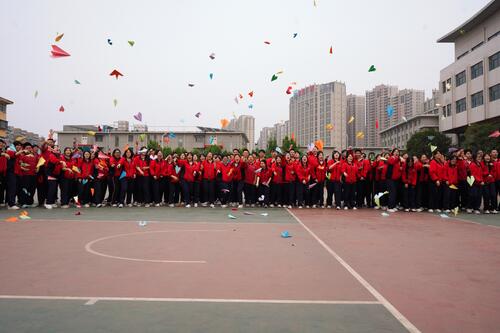 活动精心设计了四个环节。“履带战车”环节中,同学们脚踩履带、步伐一致向前冲,深刻体会到“走得稳才能走得远”的道理;“击鼓颠球”环节里,大家各持一根绳子协作颠球,球可以掉落但心不能涣散,在一次次尝试中逐渐学会彼此配合;“梦想接力,传递甜蜜”环节中,班主任在圈内将零食逐包传给学生,速度慢一点没关系,重要的是每一包零食都承载着老师与同学手中的温度;最后的“梦想纸飞机”环节将气氛推向高潮——承载着高三学生理想的数百架纸飞机划破长空,场面既壮观又动人。