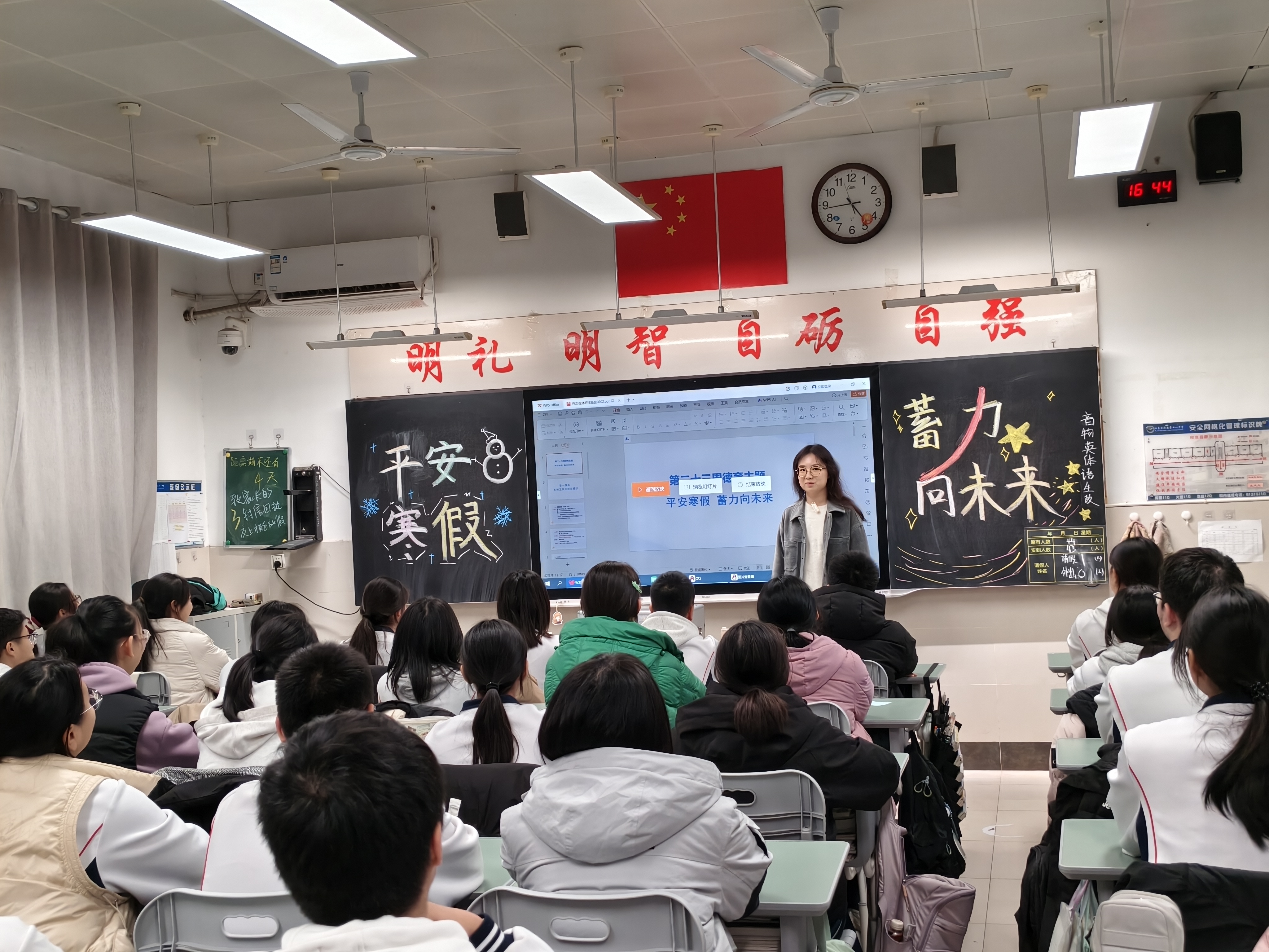 下午的主题班会上,班主任们将安全知识普及与未来规划引导落到实处,从交通安全、消防安全、用电安全到网络安全、食品安全等多个维度,深入浅出地讲解了寒假安全要点。班主任们还引导学生思考如何在假期实现自我提升,鼓励大家制定详细的学习计划,坚持每日阅读,进行适当的体育锻炼,参与力所能及的家务劳动或社区志愿服务,在实践中增长见识、提升能力。 本次主题教育活动,不仅为学生的寒假安全筑牢了坚实屏障,更引导学生树立了正确的假期生活观念。同学们纷纷表示,将牢记安全知识,严格遵守假期规范,合理规划时间,在平安度过假期的同时,不断充实自我、提升自我,以饱满的精神状态迎接新学期的到来,为实现人生理想积蓄充足力量。