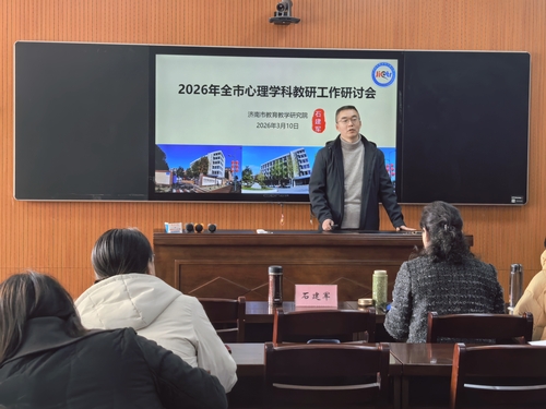 近日,2026年全市心理学科教研工作研讨会在济南十一中召开。活动由市教研院石建军主持,各区县心理教研员和市直各学校心理负责教师50余人参加。 交流互鉴凝经验 聚力研思促心育 区县和直属学校代表围绕心理好课堂建设、心理品牌梳理培育、心理公益讲座、大健康育人行动、新阅读项目、心理学科课程思政、数智教研、学生心理筛查八个方面展开深度交流。市中区的“心理共生课堂”、历下区的“读原著做中学”、槐荫区的“大健康‘五个聚焦’”、天桥区的“‘绿黄橙红’四级管理机制”、章丘区“心理筛查‘三级三类’”、高新区的“三级心理品牌”、平阴县的“525心理课堂”、济南回民中学的“心理品牌创建理念思维”,反映出全市心理学科较高的思考和实践水平。 部署解读明方向 笃行实干启新程