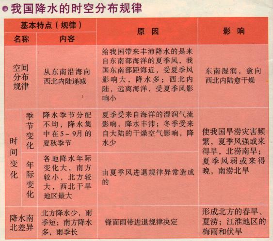 材料二:中国年降水量的分布和我国降水的时空分布规律