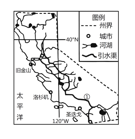 米。下图为“加利福尼亚洲北水南调工程示意图”。据此完成下面小题。
