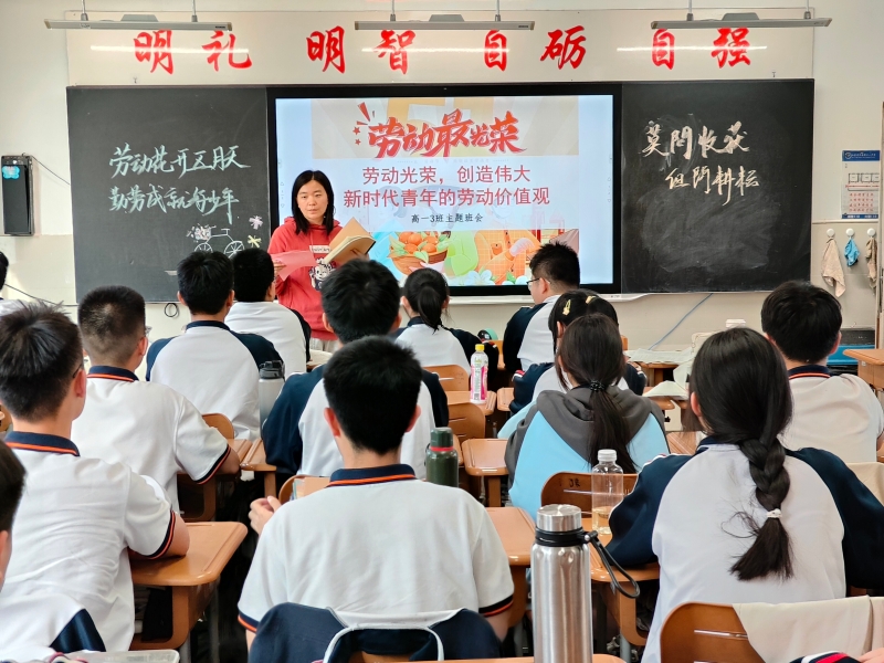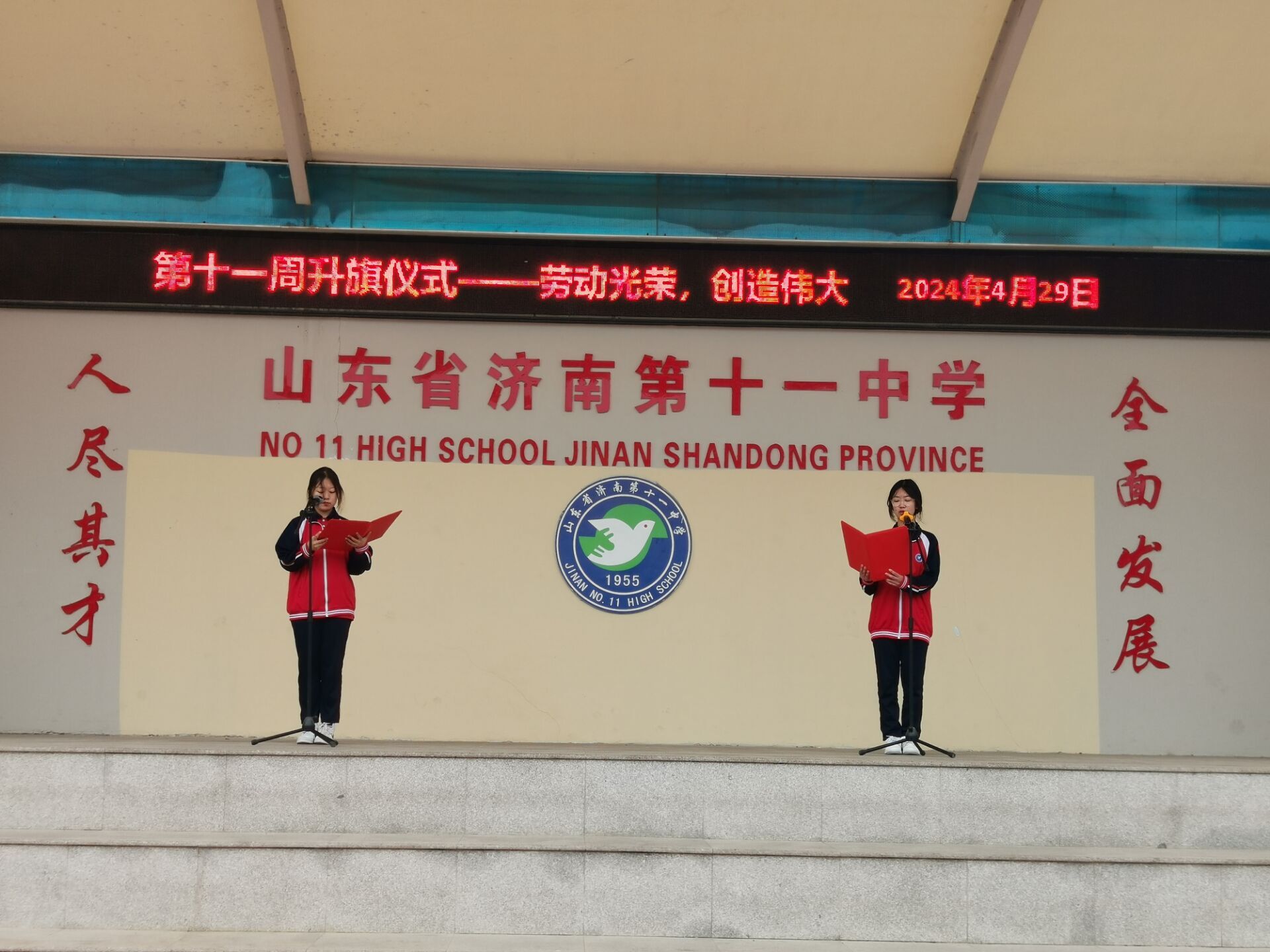 五一国际劳动节来临之际,济南十一中举行“劳动光荣,创造伟大——新时代青年的劳动价值观”主题升旗仪式和主题班会。 4月29日清晨,全校师生齐聚体育场,迎接新一周的开始。高二8班9位女同学组成的升旗仪仗队英姿飒爽,护卫着国旗,正步走向升旗台。在全体师生嘹亮的国歌声中,鲜艳的五星红旗冉冉升起。在国旗下演讲中,8班学生代表胡敖萍同学发表了题为《劳动光荣,创造伟大——新时代青年的劳动价值观》的讲话,阐明了劳动的价值,提醒同学们要认识到劳动是实现自我价值的重要途径;劳动是推动社会进步的重要力量;劳动也是实现共同富裕的重要途径;呼吁同学们要树立正确的劳动价值观,立志成为新时代的劳动者。 在本周的主题班会课上,各班围绕“劳动的价值”问题展开了热烈的讨论,班主任老师通过分享文章、视频等方式,引导同学们正确认识信息化社会中劳动的内涵与形式的变化,树立“劳动光荣,创造伟大”的新时代劳动价值观。