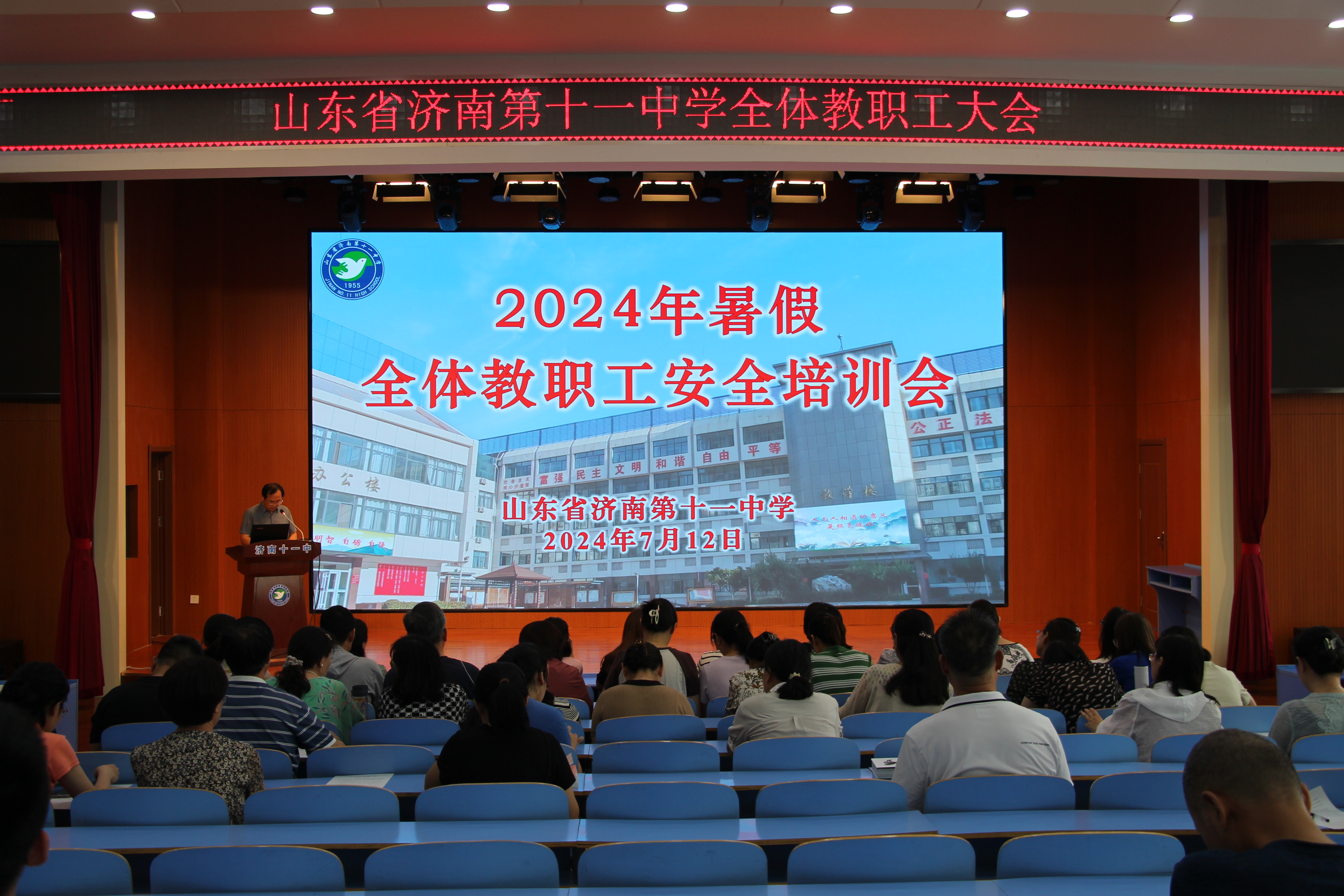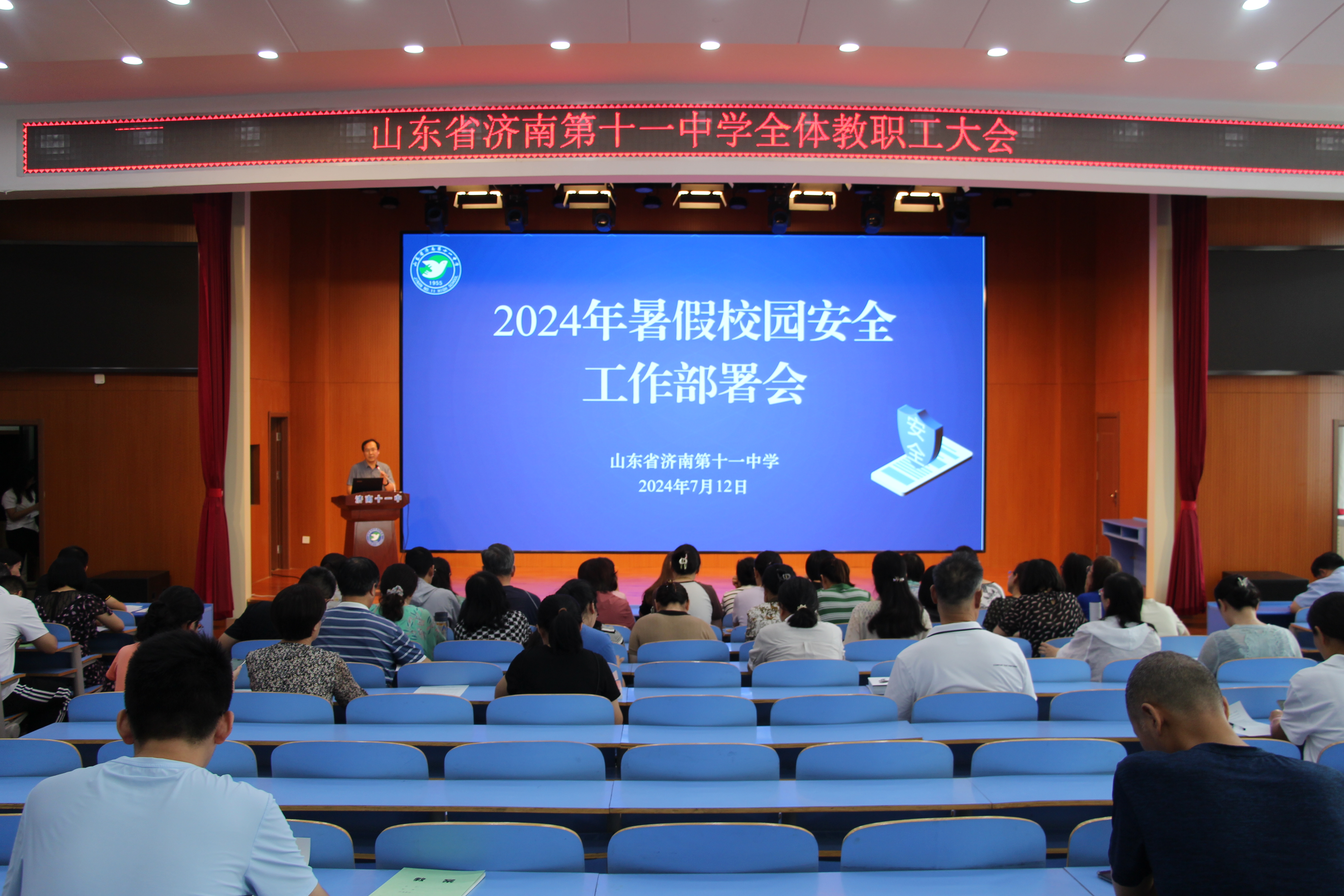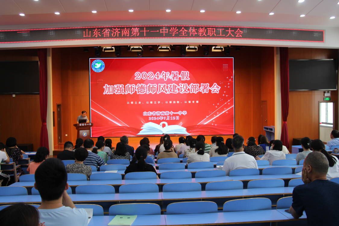 部署假期工作 杨校长解读了2024年暑假工作计划,对暑期工作进行部署安排,特别强调了暑期安全、家校共育、师德师风、培训赋能、党纪学习教育、校园维修服务等重要工作,指出要做好优课团队筹备工作,学科教研活动的规范性、科学性和有效性。 全体十一中人用实际行动诠释着高度的责任意识、大局意识和合作精神。此次会议的召开,不仅为学校本学期的工作画上圆满的句号,也为即将到来的暑假和新学期工作指明了方向,鼓舞了士气。